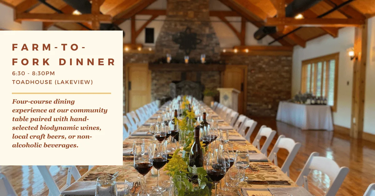 Discover the flavors of the season through a four course dining experience. Our Signature Farm-to-Fork Dinners bring people together at our community table to appreciate elevated farm flavors, engaging conversations, and a renewed connection to the land. Our culinary team crafts menus using freshly harvested ingredients from our farm and local partners. Every dish tells […]